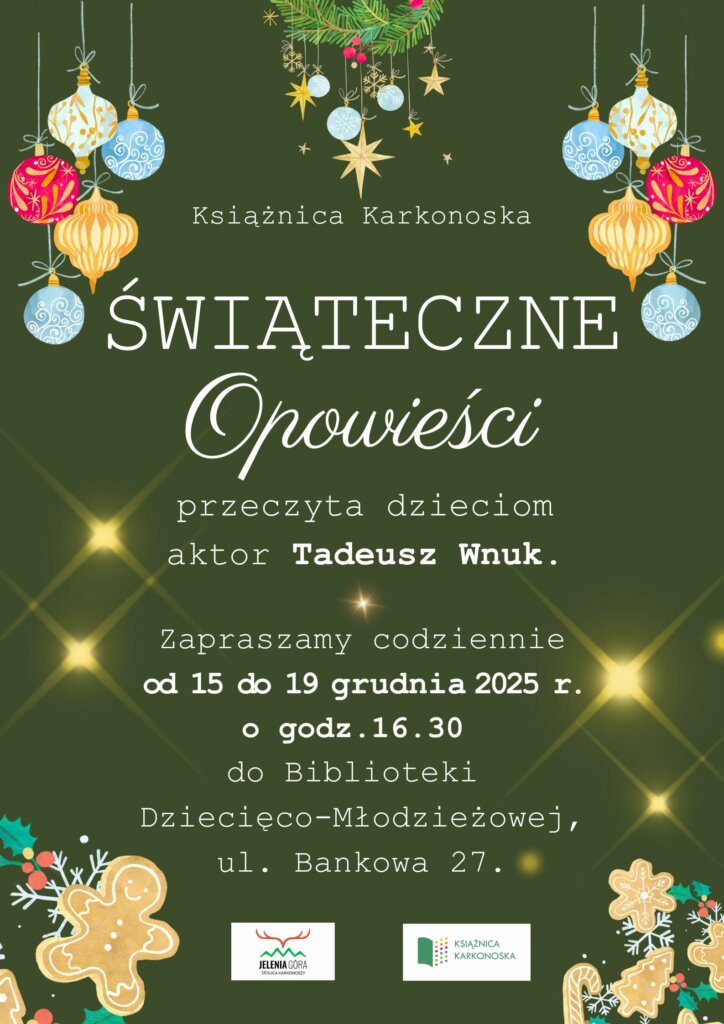 Serdecznie zapraszamy Was na wyjątkowy cykl spotkań, podczas których poznacie zimowe i bożonarodzeniowe opowieści. Wszystkie historie przeczyta Wam aktor Tadeusz Wnuk.