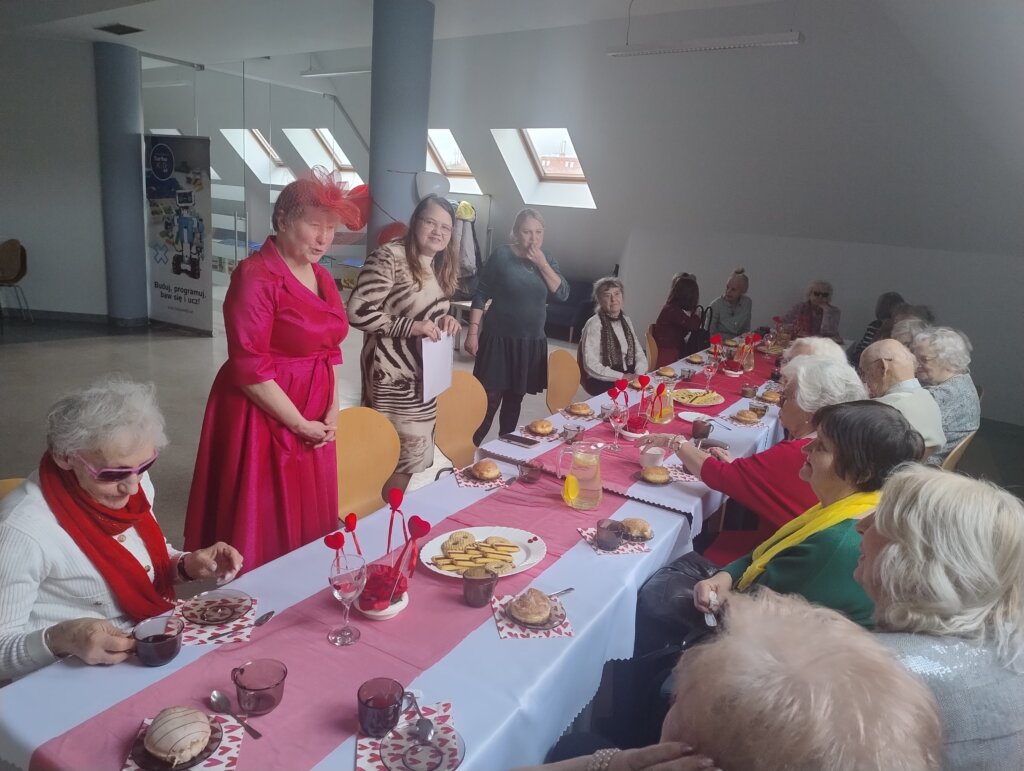 12 lutego 2026 roku, z okazji zbliżających się Walentynek, mieliśmy przyjemność gościć członków Polskiego Związku Niewidomych. Przy pięknie udekorowanych stołach i słodkich łakociach uczestnicy losowali walentynkowe wróżby, a potem opowiadali romantyczne miłosne historie. Wysłuchali czytanego przez bibliotekarza fragmentu książki Iwony Kienzler pt. „Europa jest kobietą. Romanse i miłości sławnych Europejek”. Był to rozdział poświęcony Świętosławie – siostrze Bolesława I Chrobrego. Chociaż niewiele o niej wiemy z podręczników do historii, to opowiadają o niej stare kroniki oraz skandynawskie sagi. Świętosława podzieliła los wielu księżniczek, poślubiając szwedzkiego króla Eryka w celach politycznych oraz doświadczając odrzucenia przez tego, dla którego biło jej serce…
