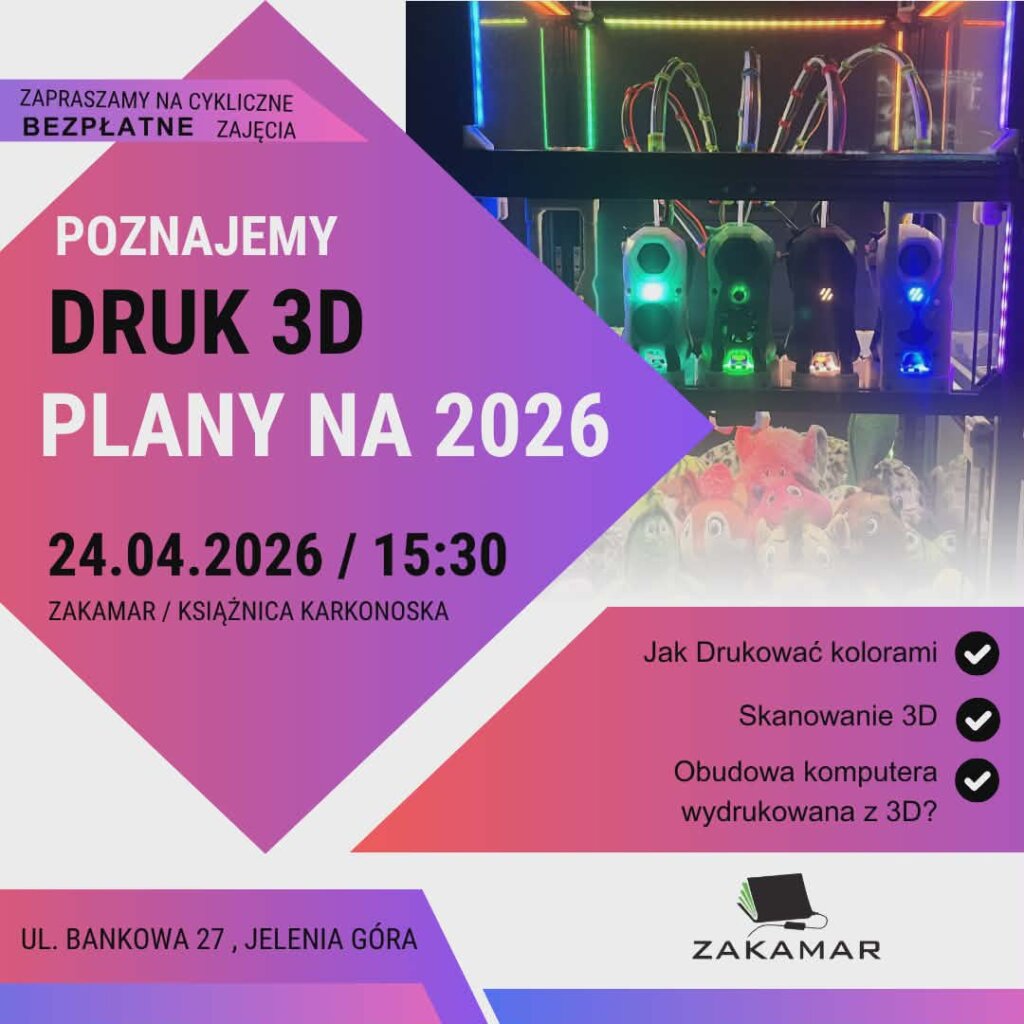Wracamy do cyklicznych zajęć z DRUKU 3D dla uczniów, studentów i nauczycieli – prowadzenie Patryk Kemi.