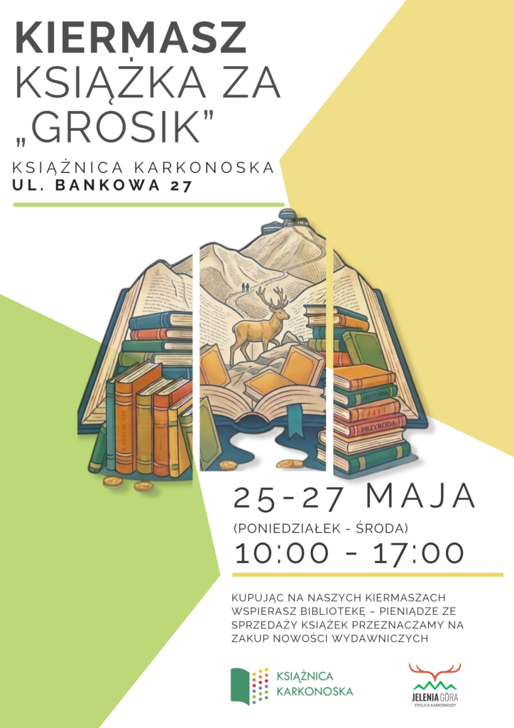 W dniach 25 do 27 maja 2026 r. serdecznie zapraszamy wszystkich na kiermasz „Książka za grosik”, który odbędzie się przed siedzibą główną Książnicy przy ul. Bankowej 27 w godzinach 10:00 do 17:00.